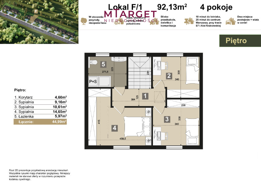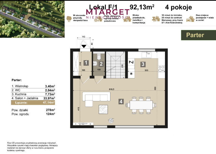 Niniejsza informacja nie stanowi oferty w rozumieniu Kodeksu Cywilnego. Dokładamy wszelkich starań, aby informacje dotyczące oferowanych obiektów były możliwie dokładne, kompletne i aktualne. Ze względu jednak na fakt, iż informacje te pochodzą od osób trzecich i nie zawsze dają się zweryfikować, firma MTARGET NIERUCHOMOŚCI nie ponosi odpowiedzialności za ich dokładność.
