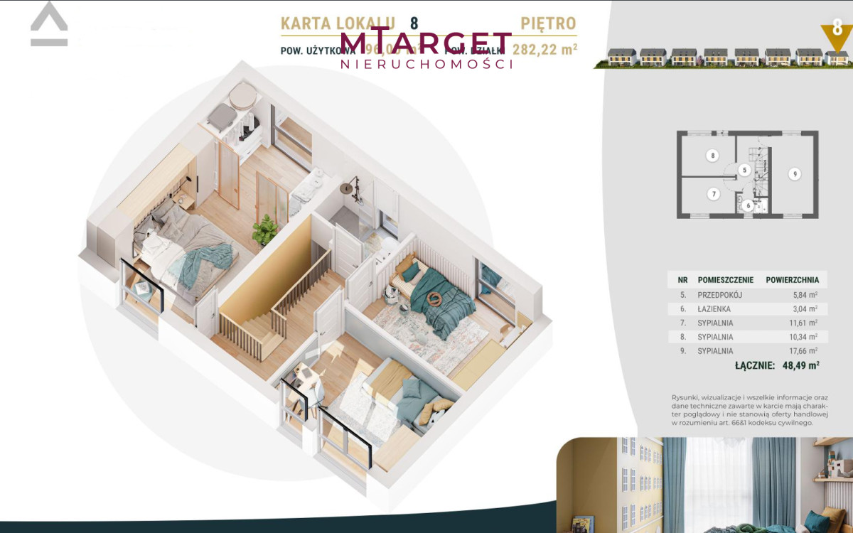 Niniejsza informacja nie stanowi oferty w rozumieniu Kodeksu Cywilnego. Dokładamy wszelkich starań, aby informacje dotyczące oferowanych obiektów były możliwie dokładne, kompletne i aktualne. Ze względu jednak na fakt, iż informacje te pochodzą od osób trzecich i nie zawsze dają się zweryfikować, firma MTARGET NIERUCHOMOŚCI nie ponosi odpowiedzialności za ich dokładność.
