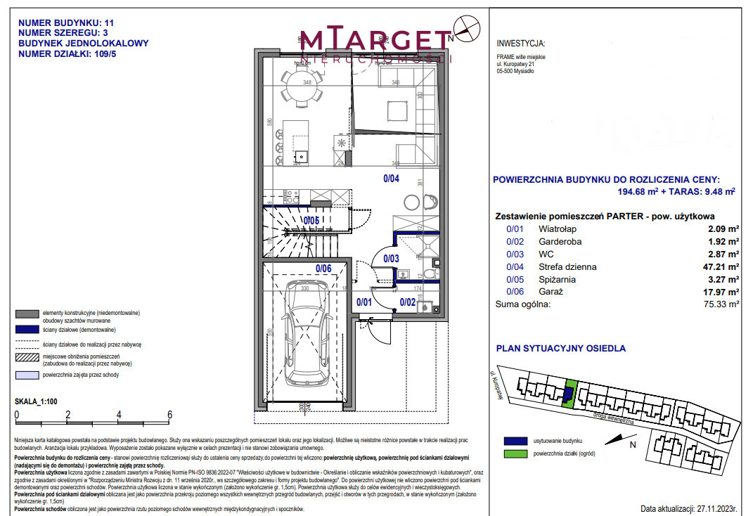 Niniejsza informacja nie stanowi oferty w rozumieniu Kodeksu Cywilnego. Dokładamy wszelkich starań, aby informacje dotyczące oferowanych obiektów były możliwie dokładne, kompletne i aktualne. Ze względu jednak na fakt, iż informacje te pochodzą od osób trzecich i nie zawsze dają się zweryfikować, firma MTARGET NIERUCHOMOŚCI nie ponosi odpowiedzialności za ich dokładność.