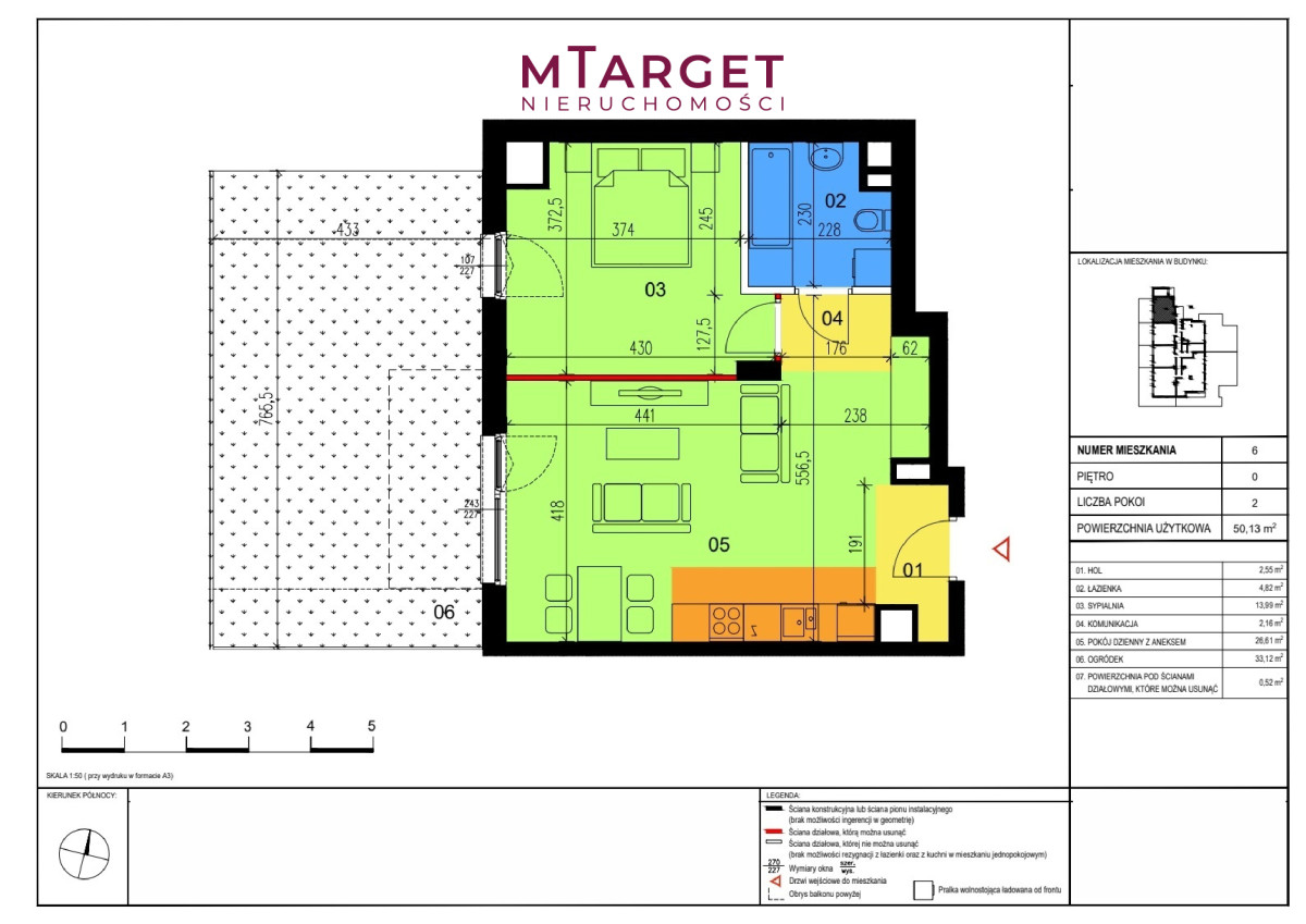 Na sprzedaż funkcjonalne 2 pokojowe mieszkanie o powierzchni 50,13 m2 z ogródkiem o pow. 33,12 m2.